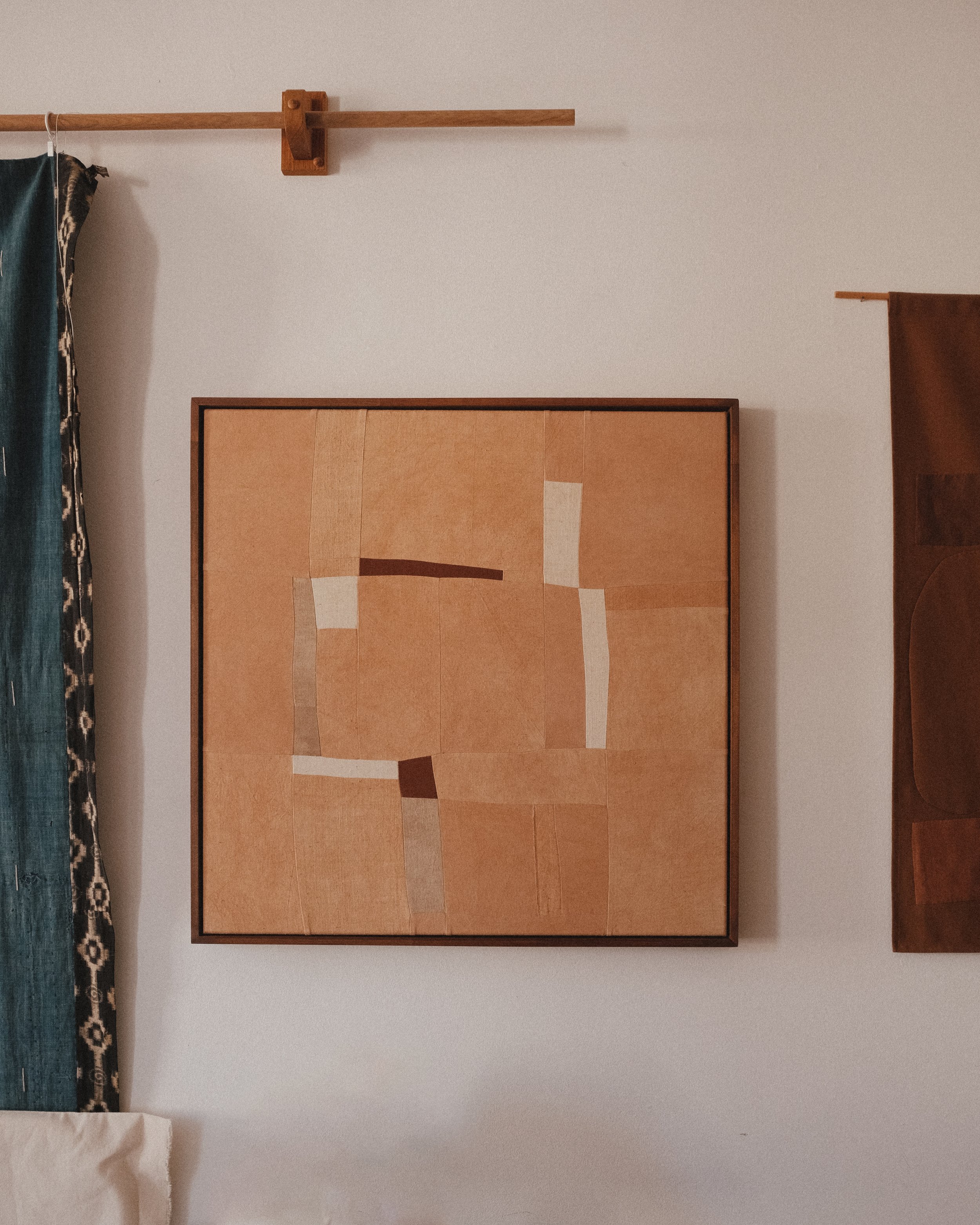 Discover original artworks by House of Quinn—painted, stitched, and constructed pieces that explore memory, material, and abstract form. Each work is made slowly and intentionally, drawing on a quiet, layered language of place and process.