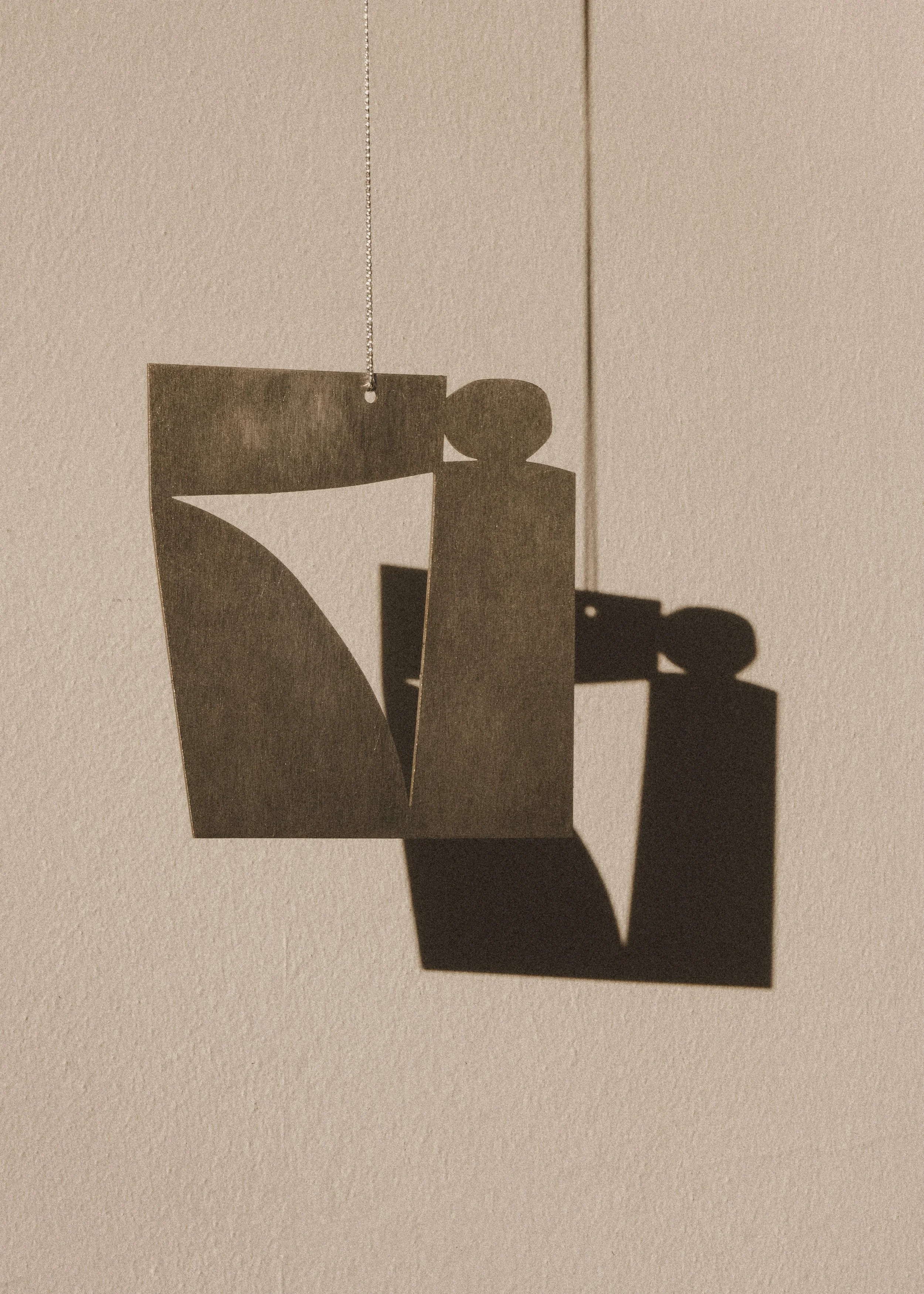 Each decorative form is cut from brushed steel and shaped into an abstract silhouette drawn from ideas of land, season, and the simple winter rituals that inform my work. The brushed surface reflects light softly when hung, creating shifting highlights and shadow throughout the day. Designed to be adaptable, it can be hung from a branch, hook, or ribbon as a modern winter decoration — a subtle marker of the season and a contemporary alternative to traditional festive ornaments.
