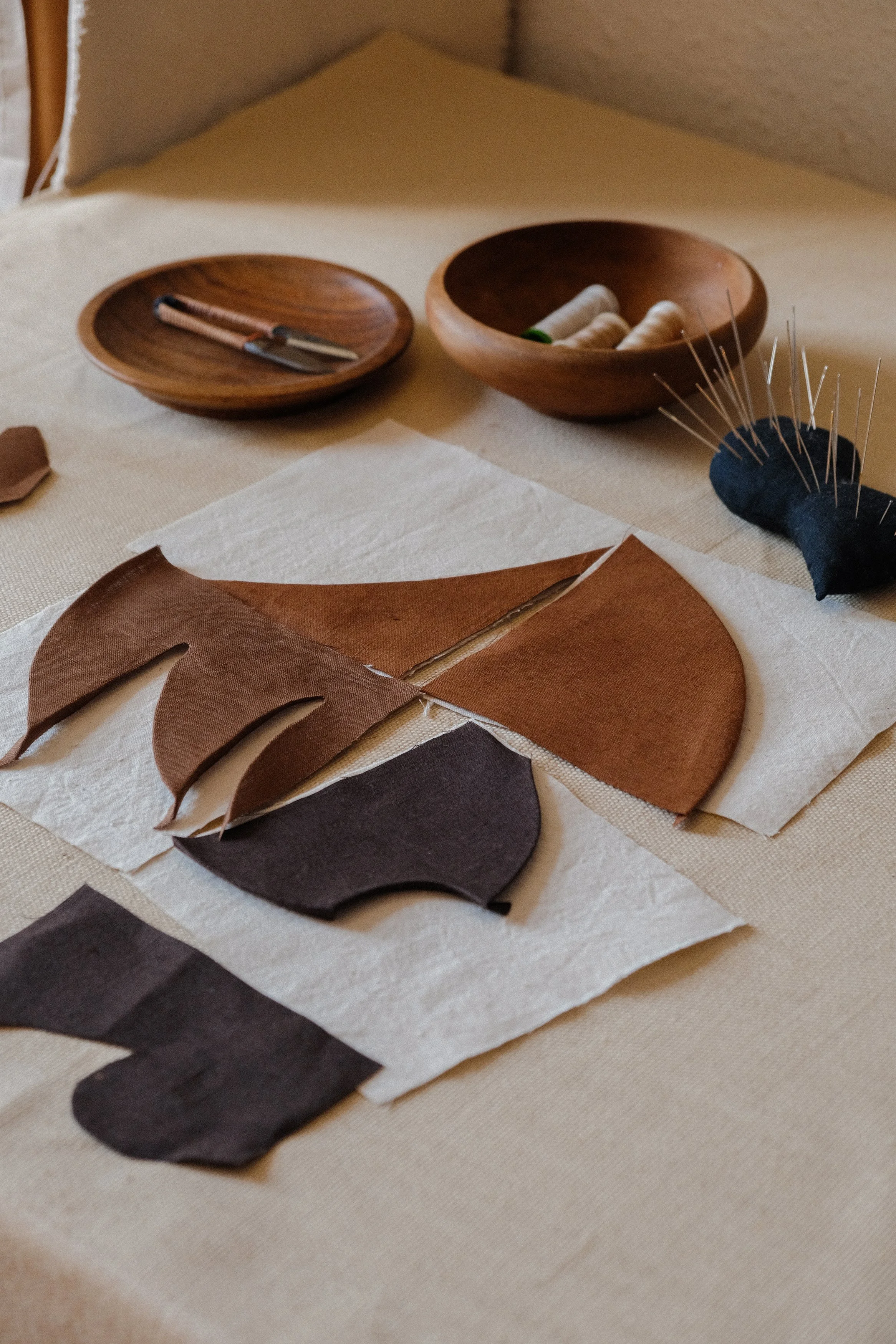 Sewing machine & thread: A standard domestic sewing machine threaded and ready to use. Neutral thread works well, as we are working with different coloured fabrics, threads that match or compliment will work fine.